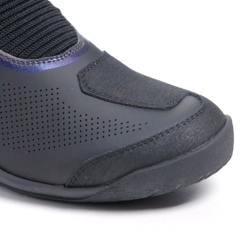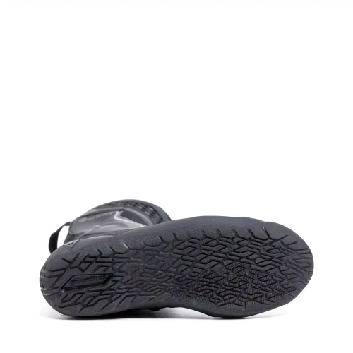 Groundtrax®-sålen har et spesifikt sammensetning og mønster for å sikre maksimal stabilitet og grep på forskjellige terreng, mens mikrofiberoverdelen med store stretch-stoffpaneler garanterer ekstrem letthet og gåkomfort. Dessuten er støvlenes såler asymmetriske, for best mulig kontroll av spakene når du sykler.