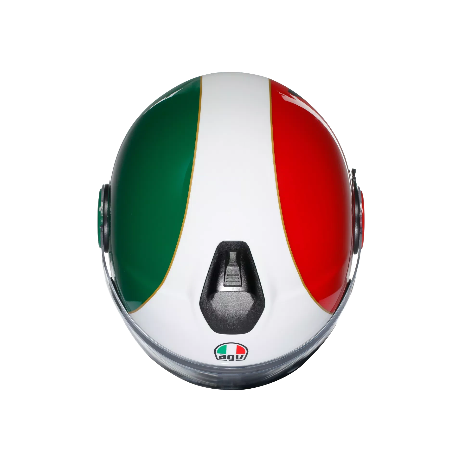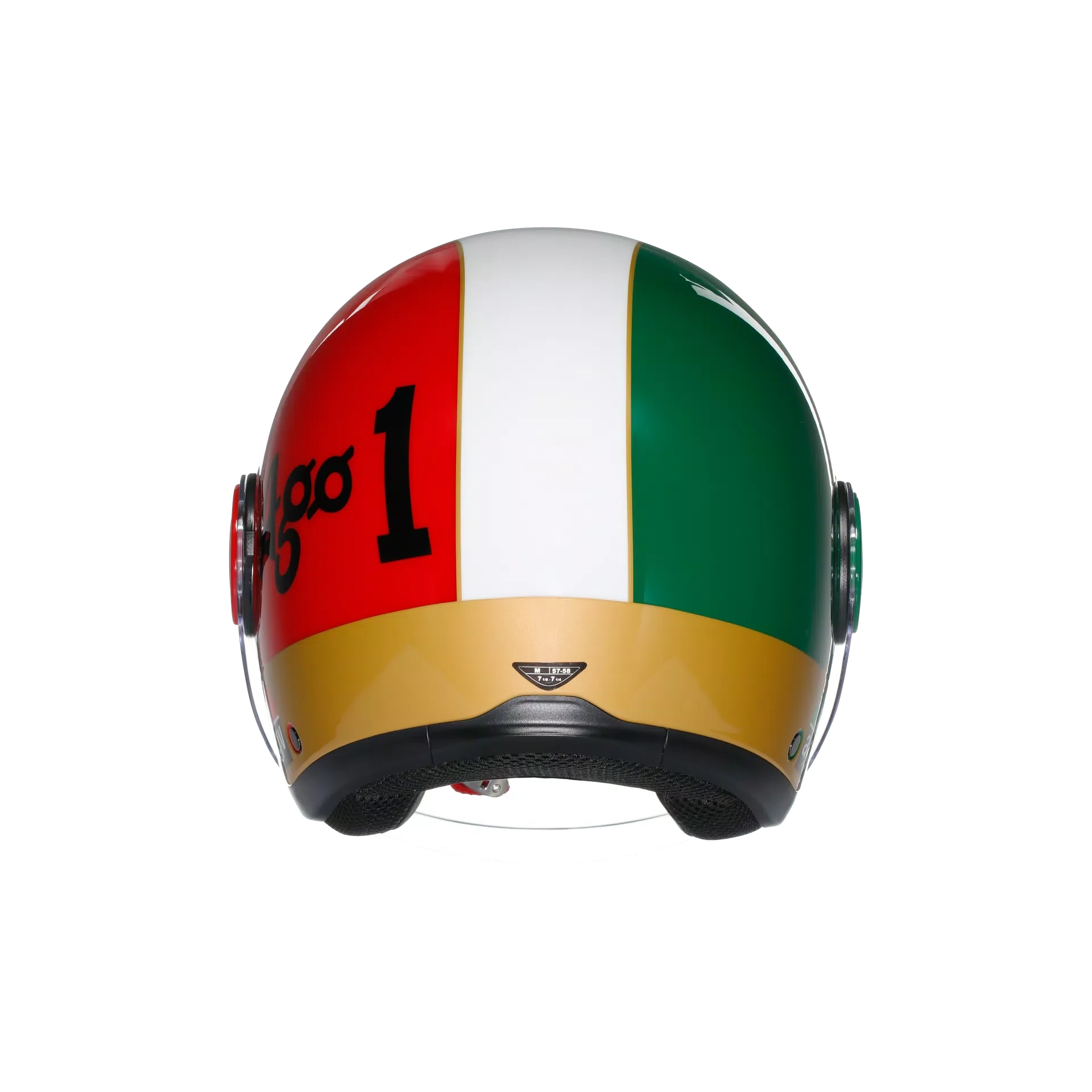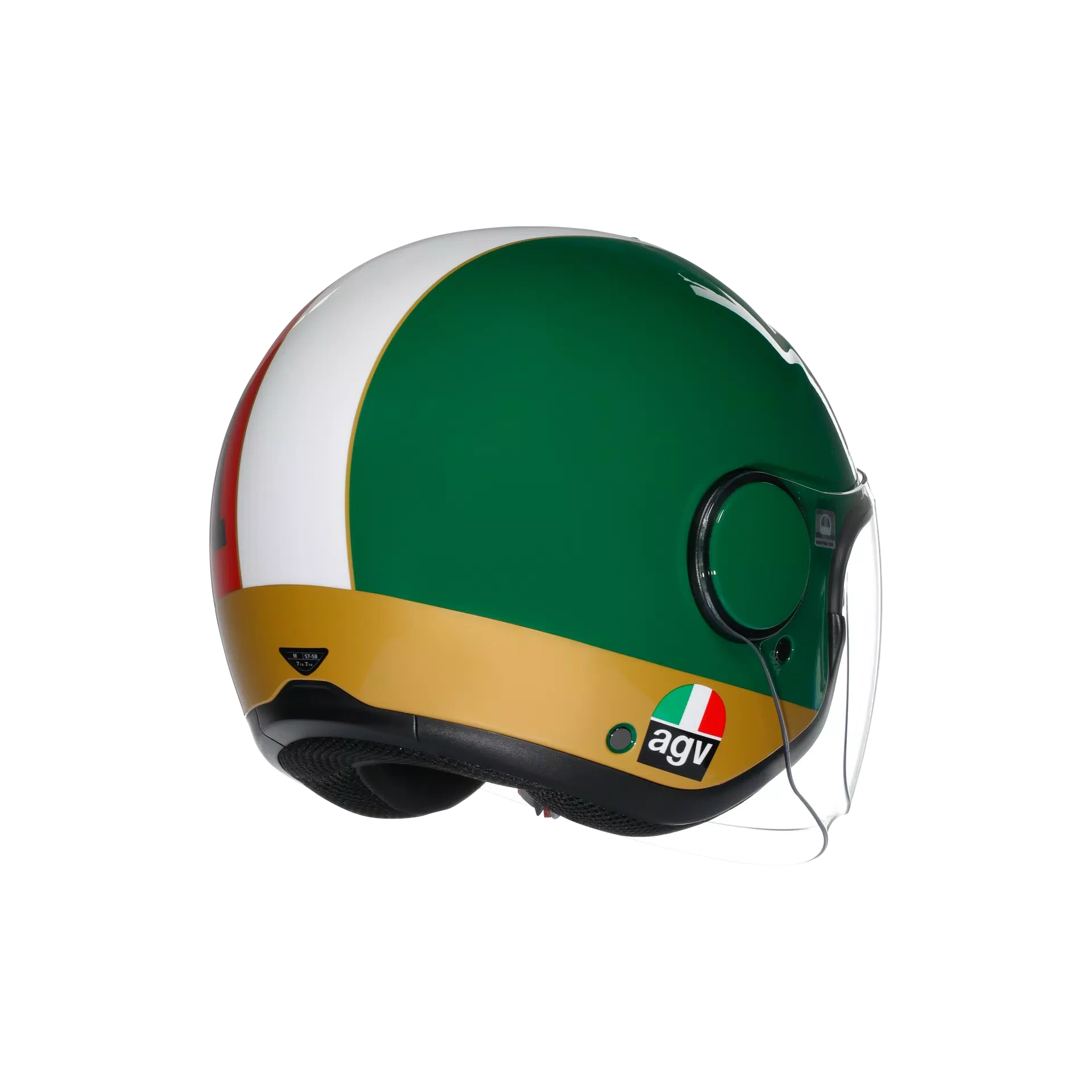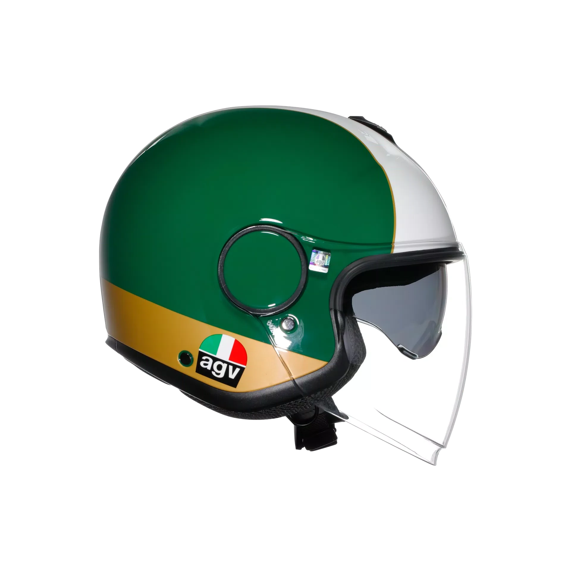Ny ECE2206-godkjent jethjelm, med den originale og ikoniske lakken til den legendariske Giacomo Agostini. ETERES er designet for å kombinere sikkerhet, komfort og frihet under kjøring, i ethvert bymiljø
