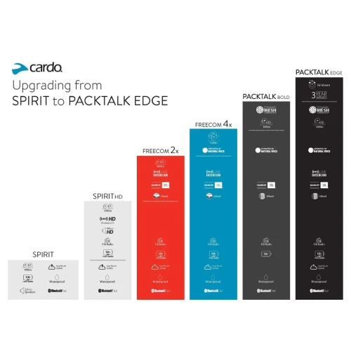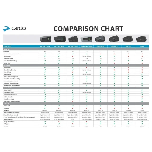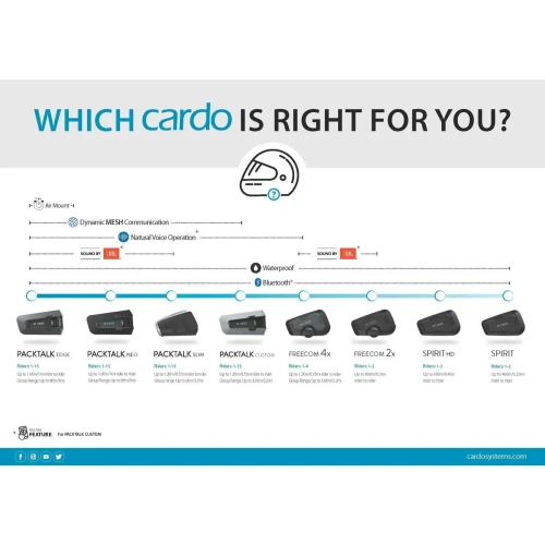 Godt kommunikasjonssett med blåtann 5.2 fra Cardo for 1-2 personer på inntil 800m. Fører/fører eller fører/passasjer. 40mm JBL høyttalere for topp lydkvalitet. Opp til 13t tale og hurtiglading. Vanntett. Kan brukes mot alle andre merker blå- tann, telefoner, GPSer og TFT. Musikkdeling, VOX (voice operating) og kan styres via Cardo sin app. Live intercom og kontrollhjul for lettere betjening. OTA oppdatering.